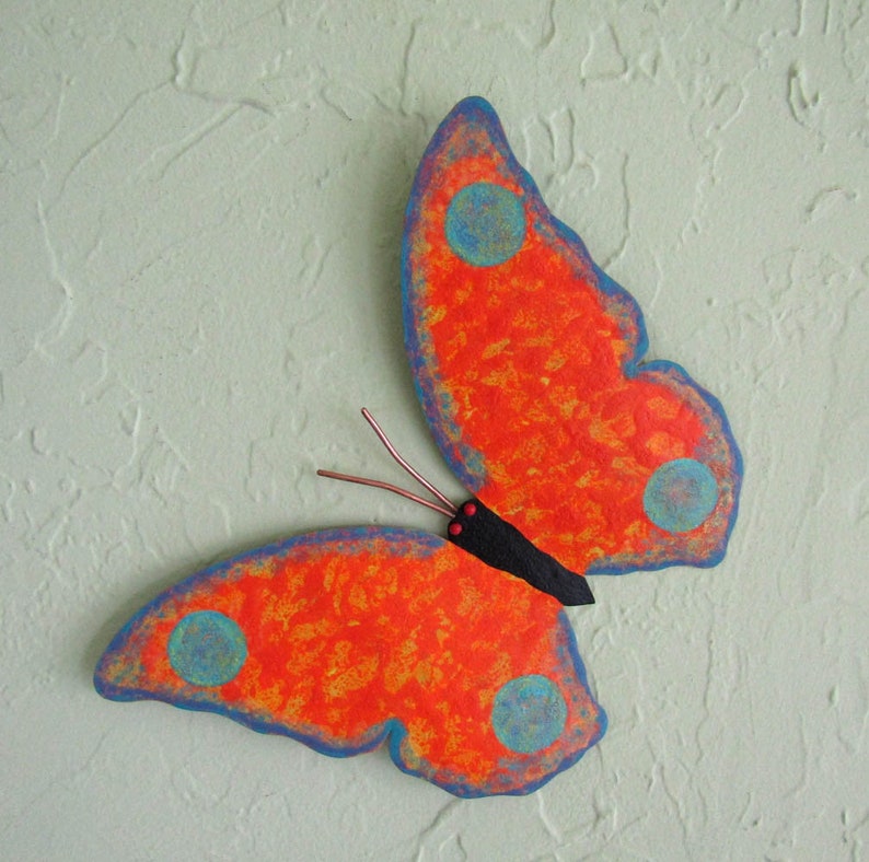 Butterfly Wall Art Garden Butterfly Decor Indoor Outdoor Butterfly Wall Sculpture Orange Blue Butterfly 8 X 12